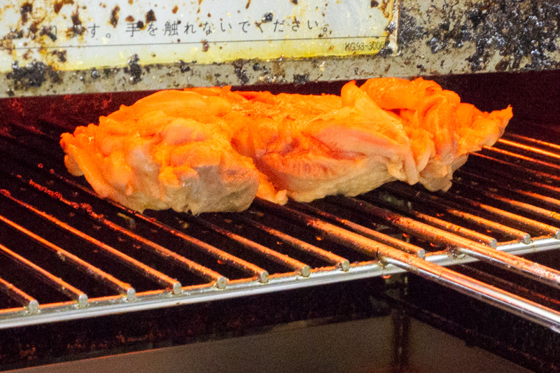 店主さんが前のお店(焼き鳥屋)から継ぎ足しているタレをかけてから、