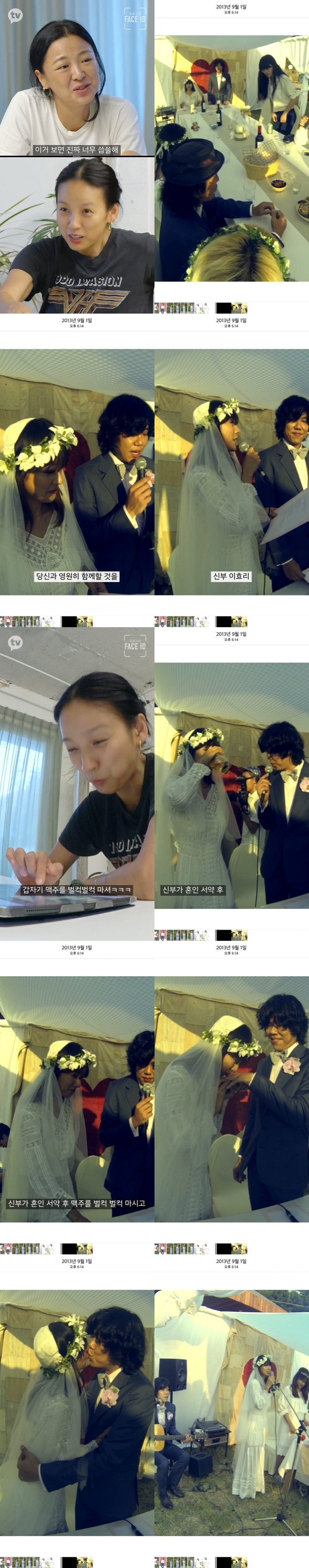 영상에는 혼인 서약을 하는 신부 이효리, 신랑 이상순의 모습이 담겼다. 이효리는 영상을 지켜보고는 "신부가 혼인 서약 후 갑자기 맥주를 벌컥벌컥 마셔"라며 웃었다.